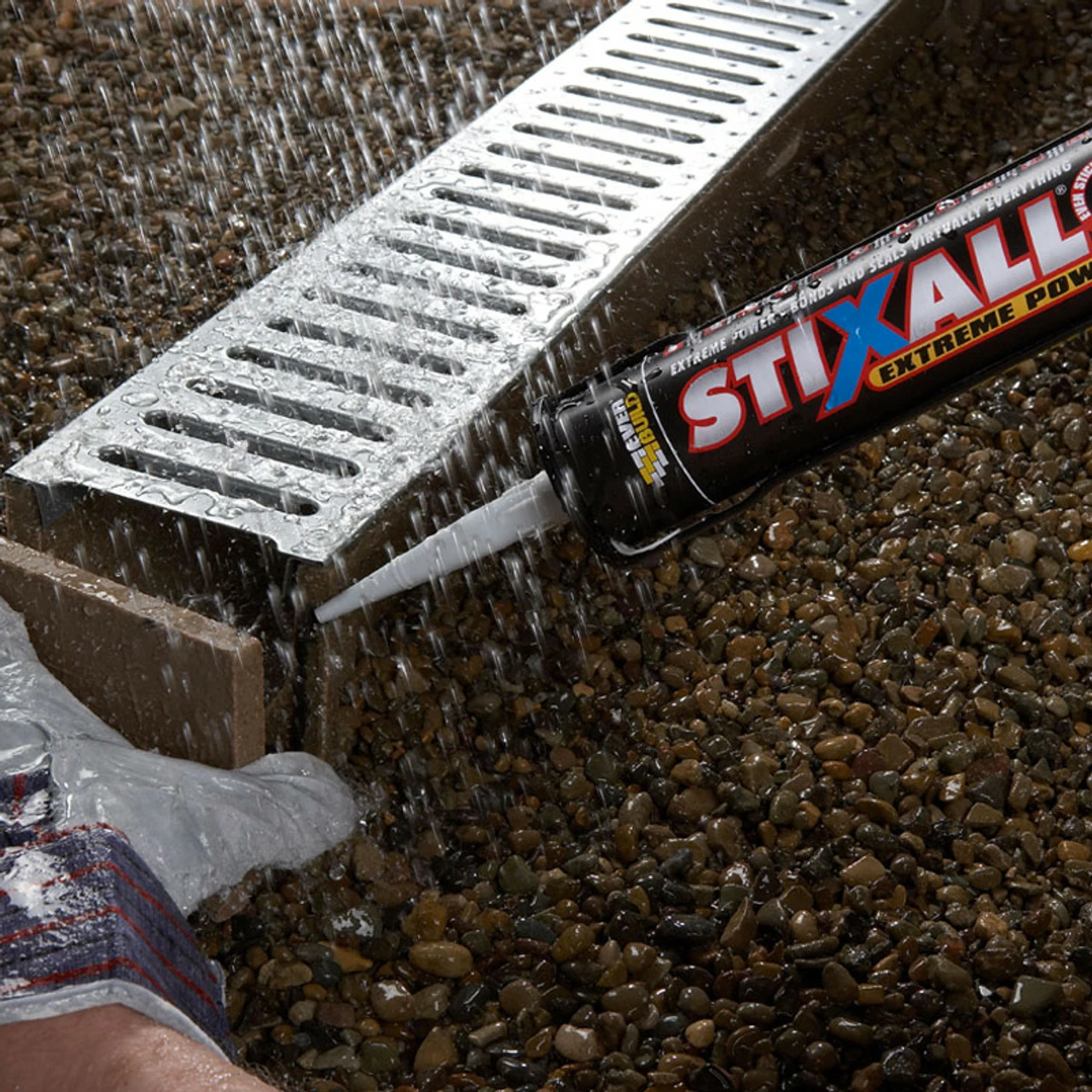 Everbuild Stixall Extreme Power is the ultimate combined building adhesive and sealant, based on hybrid polymer technology, with the most Extreme power to both bond and seal virtually EVERYTHING to ANYTHING in nearly all conditions, even under water or in the rain!