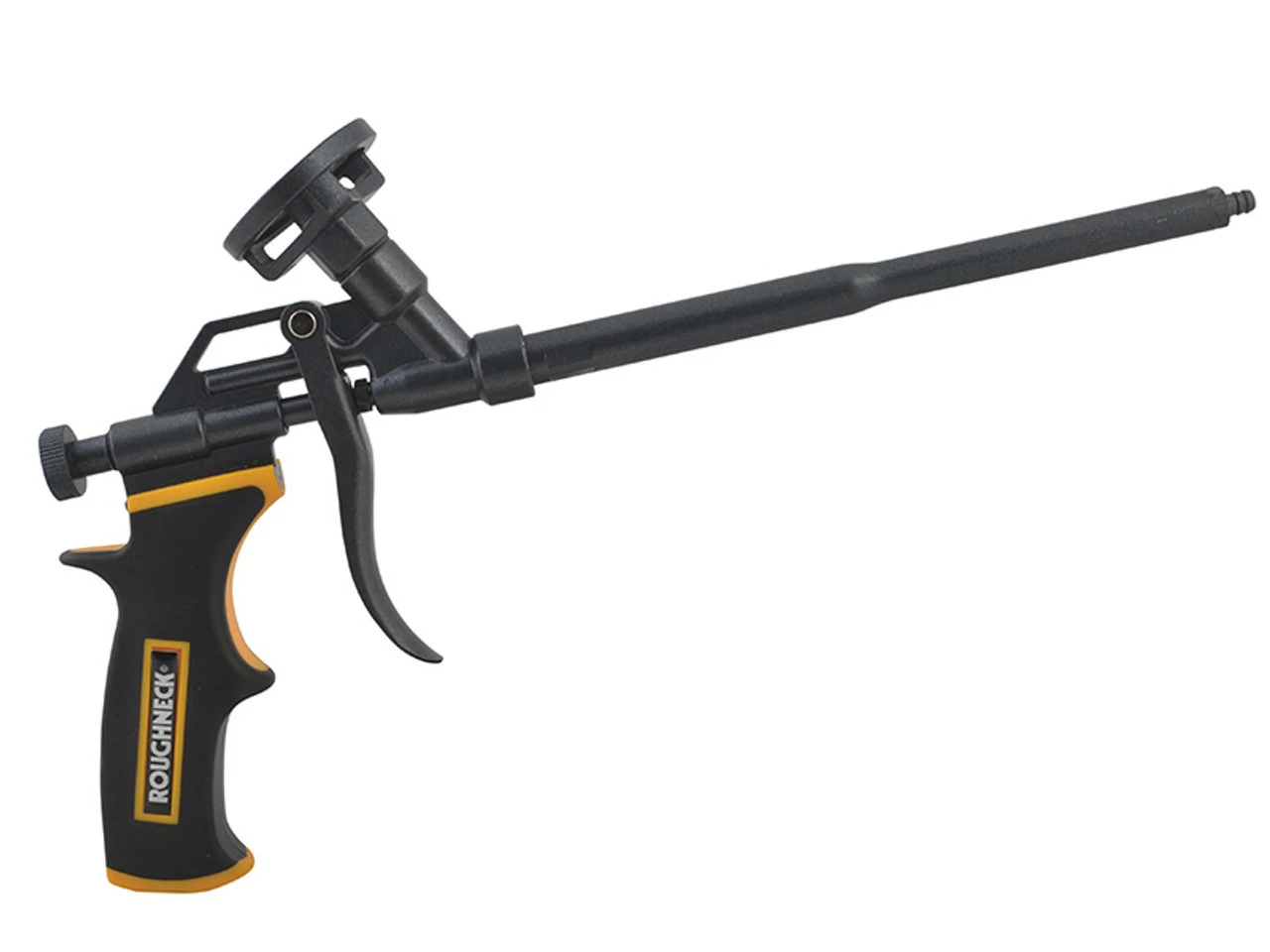 This Roughneck Professional Foam Gun has a large, sturdy metal body with a comfortable soft grip, making it suitable for long working periods.Β The Foam Gun has a brass barrel, needle and nozzle with non-stick coating. The aluminium body is also coated with a non stick coating. With flow adjusting knob for greater control and can holder adaptor.